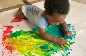 Enquanto aprendia a engatinhar, o menino passou a espalhar a tinta por um tecido de lona no chão e criar formas abstratas usando diferentes cores. A mãe percebeu que a atividade estimulava a sua criatividade e passou a fornecer mais tinta e dedicar mais tempo a essa brincadeira.