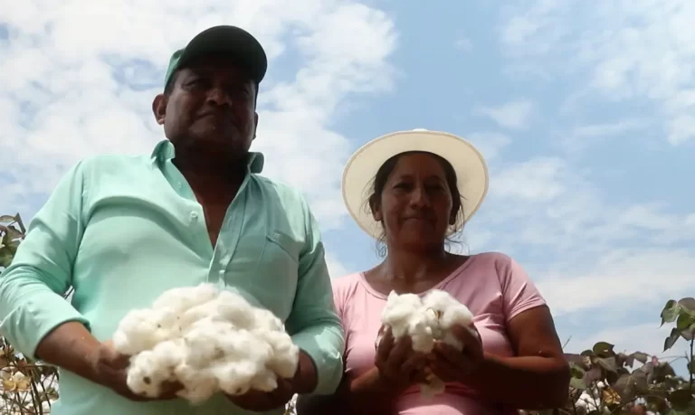 De 2017 até agora, o programa +ALgodão tem trabalhado na Colômbia com o uso de técnicas brasileiras como substituição de agrotóxico por biofertilizante, sistema de irrigação que não desperdiça água e rotação de culturas. Isso tem reduzido os custos da produção e os pequenos produtores colombianos têm aprovado. “Está indo muito bem e se vê uma boa mata e um bom algodão”, comenta Rosa Rubiano Rojas, que cultiva em terras que ficam a seis horas da capital Bogotá. Rosa vive com a família na zona rural de Villavieja, município que guarda o Deserto de Tatacoa, a segunda área mais árida da Colômbia.