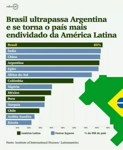 Os dados apontam que desde o ano passado, o Brasil assumiu essa infeliz liderança, atingindo a marca de 85% do Produto Interno Bruto (PIB) em dívida pública.