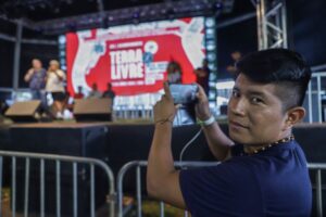 “Awiti mãsa”. A transmissão de, no mínimo, duas horas de duração começa com uma saudação em língua tukano que poderia ser traduzida como “olá, tudo bem?”. Ao vivo, direto do Acampamento Terra Livre (ATL), no centro de Brasília, o comunicador indígena João Paulo Sampaio, da Rede Wayuri, da etnia piratapuia, e residente em São Gabriel da Cachoeira (AM), não para nunca. Ele tem a preocupação de contar as novidades do evento na capital do Brasil. Por isso, entra ao vivo na rádio e nas redes sociais, fotografa, filma e escreve. “As pessoas da minha comunidade estão esperando pelas novidades daqui”.