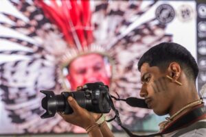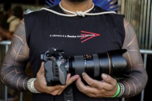 Também agarrado à sua máquina, o estudante de jornalismo Duiwe Orbewe, de 21 anos, do povo xavante, do território indígena de Parabubure, em Campinápolis (MT), atua como videomaker e fotógrafo. Ele diz que se apaixonou pela imagem aos 5 anos de idade, em sua aldeia, quando assistiu ao filme O mestre e o divino, dirigido por um indígena (Divino Tserewahu).