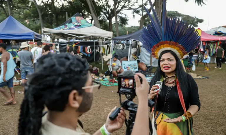 “É uma forma de militância, de garantir voz a quem não tem chance. De dar espaço a protestos, às causas indígenas e às mulheres”. Por isso, desde que chegou ao acampamento, não parou. “São muitas histórias e estamos aqui para isso”. O gravador e o microfone são extensões desses ideais.