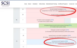 … No corrente ano, 2024, há previsão de envio de 5 (cinco) militares para realização de cursos voltados para a Segurança de Voo no Instituto de Segurança do Sul da Califórnia (Southern California Safety Institute – SCSI, em inglês), sendo 2 (dois) para a Investigação de Acidentes Aeronáuticos (Aircraft Accident Investigation – AAI, em inglês) e 3 (três) para os Sistemas de Aeronaves Remotamente Pilotadas (Unmanned Aircraft Systems – UAS, em inglês). Para o próximo ano, 2025, há previsão para 4 (quatro) militares, sendo 2 (dois) para cada curso mencionado.