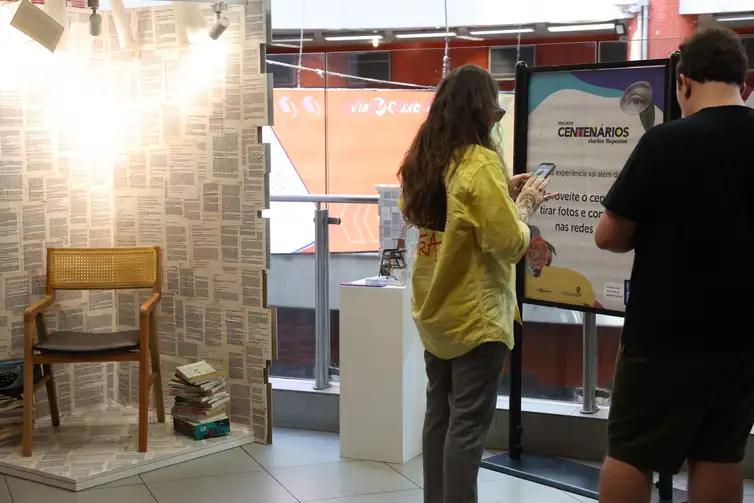 “A mostra conta com um painel interativo de fitinhas personalizadas, no qual os visitantes podem levar frases marcantes de Clarice como lembrança. Para os apaixonados pela literatura, há um espaço de leitura exclusivo com uma estante abastecida mensalmente com livros da autora, permitindo que os passageiros conheçam e explorem suas obras, além de servir como ponto de coleta para doações de obras da autora feitas pelos passageiros”, informou o Instituto CCR, organizador da mostra.