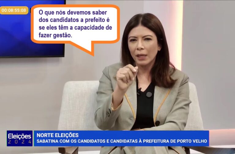 Perguntas idiotas acontecem toda hora, mas feitas por jornalistas em tevê aberta são sempre um espetáculo à parte. Mais uma vez demonstrando independência e firmeza em seus posicionamentos, a candidata a prefeita de Porto Velho pelo MDB, Euma Tourinho, em sua participação no programa Norte Eleições, na manhã dessa segunda-feira (19), simplesmente detonou as perguntinhas sem qualquer utilidade que estão sendo feitas aos candidatos a prefeito, do tipo “qual era o nome inicial da avenida antes de se chamar Sete de Setembro?”.