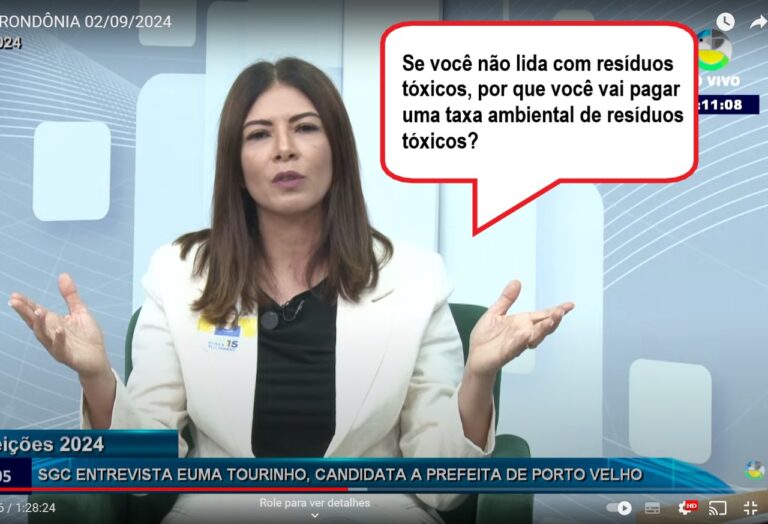 “Se você não lida com resíduos tóxicos, por que você vai pagar uma taxa ambiental de resíduos tóxicos?” Com esse questionamento, a candidata a prefeita de Porto Velho pelo Movimento Democrático Brasileiro (MDB), Euma Tourinho, afirmou em entrevista na manhã dessa segunda-feira, 2, em programa de televisão do Sistema Gurgacz de Comunicação, que sua proposta é fazer da prefeitura uma parceira do empresariado na promoção do desenvolvimento econômico e social.
