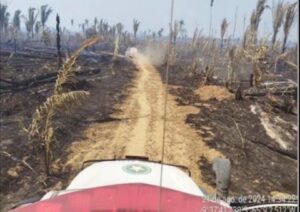 A equipe da PM esteve na fazenda Sossego, onde, aliás, o que pelo jeito não existe é sossego. Fica no km 901 da BR-364, no distrito de Vista Alegre do Abunã, zona rural de Porto Velho. Nas proximidades do Castelinho. Lá havia um grande foco de incêndio.