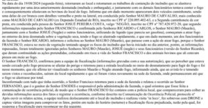 Os policiais relatam que entraram em outra propriedade, de Enodes de Oliveira Neto, e conversaram com os funcionários Francisco Antonio de Souza, Ricardo Mendonça da Silva e Carlos José Pereira da Costa. Francisco disse que estava na fundiária da fazenda tentando apagar um incêndio, pois na área havia 400 cabeças de gado, quando viu o Maurão chegando em uma caminhonete, e o funcionário do ex-deputado chegando em outra.
