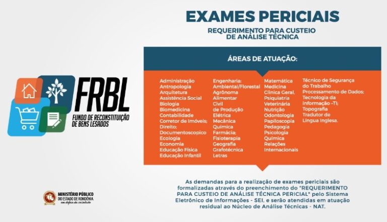 Mais de 40 áreas de atuação profissional se encaixam para prestar serviços custeados por recursos do Fundo de Reconstituição dos Bens Lesados (FRBL), através do sistema de Cadastro de Peritos do Ministério Público de Rondônia (MPRO).