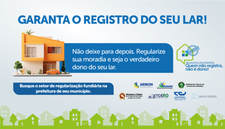 O Comitê Interinstitucional de Regularização Fundiária no Estado de Rondônia (Coiref-RO) lança campanha: “Quem não registra, não é dono” na capital do Estado de Rondônia, na próxima quinta-feira, 13 de junho. O evento de lançamento acontece a partir das 19h, na escola Estadual de Ensino Fundamental e Médio Orlando Freire, localizada na Av. Rio de Janeiro, bairro Lagoa.