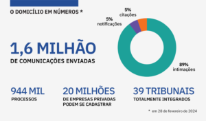 No lugar de um trabalho fragmentado de consulta, que poderia incluir o acesso dos usuários a um ou vários sistemas dos mais de 90 tribunais brasileiros, temos agora informações disponíveis em questão de segundos. ​Já para os tribunais, desde que o Domicílio Judicial Eletrônico iniciou seu funcionamento, há 1 ano, já foi possível constatar uma economia de 90% nos custos dos órgãos com envio das comunicações antes expedidas pelos Correios ou por visita de oficiais de justiça”, explica.
